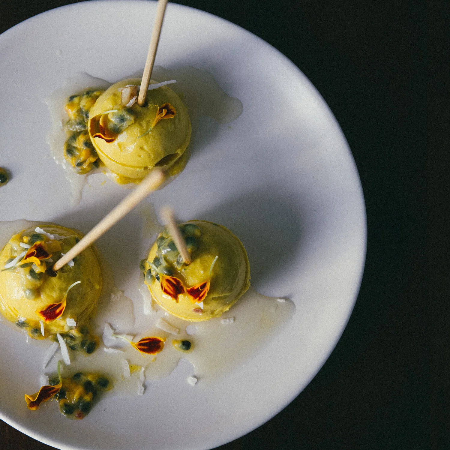 Mix all ingredients excluding the kaffir lime leaf, in a a blender. Once blended smooth, add the kaffir lime leaf to the mixture and pulse a few times to give small bursts of green (in colour and in flavour!). For mousse pops, freeze mousse mixture in moulds (see original blog post). Once frozen, remove top mould and insert sticks when preparing to serve. For plain mousse, try serving in the discarded passionfruit casing or otherwise in a favourite glass or bowl.