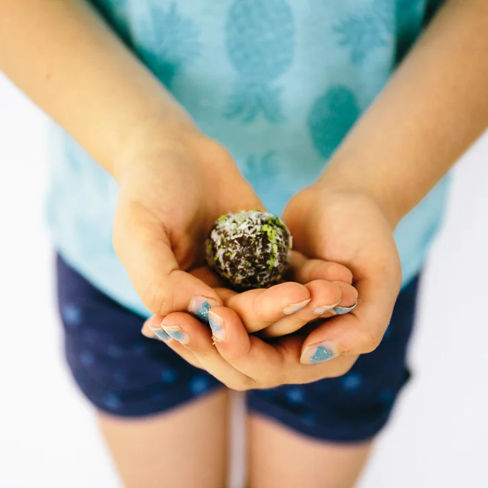 Roll balls in lime zest and a sprinkling of coconut sugar.
