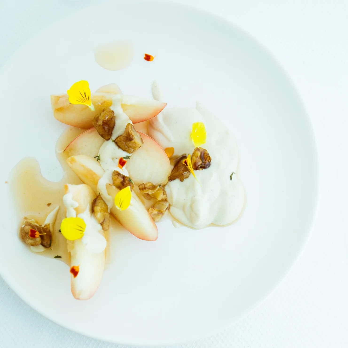 I've definitely heard of 'peaches and cream' before, but 'peaches and earl grey'? Hmm... this a bit of an experiment. The combination arose out of my "Flavour Bible" (by Andrew Dornenburg and Karen Page). A food bible, literally, with a dictionary of almost every ingredient you can think of, matched with their flavour/ingredient affinities. I use it a lot of the time, but especially when I have a beautiful ingredient I'd like to do something different with - or something unfamiliar to me at least. In any case… lets's see what you think. I have paired my earl grey peaches with a simple raw and vegan vanilla cream that has a base of soaked cashew nuts and coconut. Soaked cashew nuts are often used in raw food for creams, dressings, desserts (a lot of things!), for their neutral flavour. In the shot my cream is quite runny however you will find that by adding coconut oil (as I have done in the recipe), this will make it firmer.