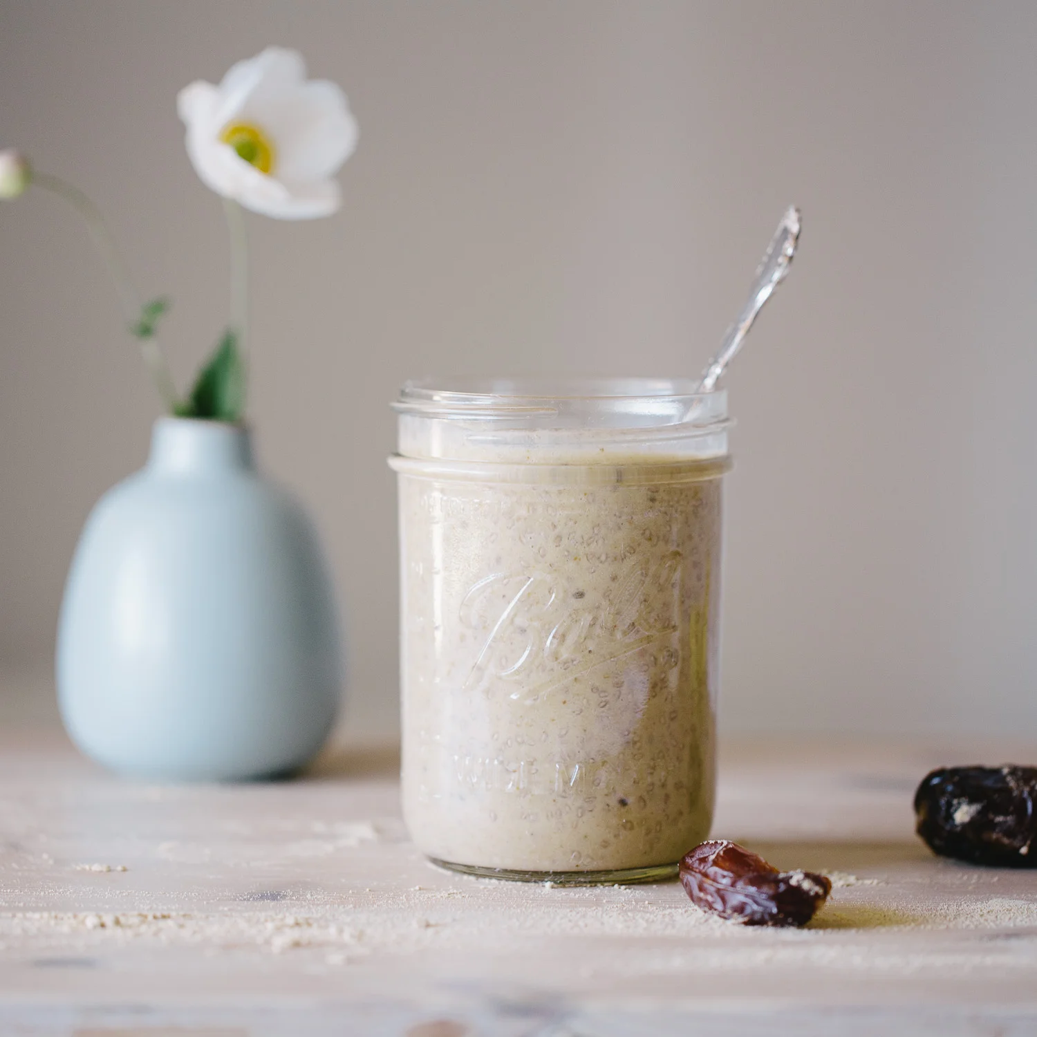 If you prefer a straight up smoothie, omit the chia seeds and increase to one and a half frozen bananas.